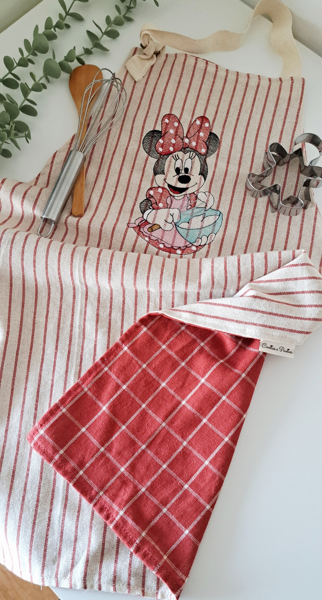 Avental Minnie 25,00 € Desconto de %. Partilhar Comprar Contactar 1 unidades em stock Qual a criança que não gosta de acompanhar a avó, a mãe ou a tia a fazer umas bolachinhas para partilhar com a familia ou com os amigos? Se concorda este artigo é perfeito para oferecer ao seu neto(a), sobrinho(a) ou filho(a). Perfeito porque é mais do que um avental giro. Este artigo é composto por: ♥ avental de criança - bordado à máquina - dupla face/ reversível - alça de pescoço ajustável - tecidos 100% algodão ♥ 2 cortadores de bolachas metálicos ♥ 1 colher de pau pequena (bambu com20cm) ♥ vara de arames metálica ♥ Artigo único ♥ ♥ Handmade with love♥ Tags aventalbordadominnieDisney Características