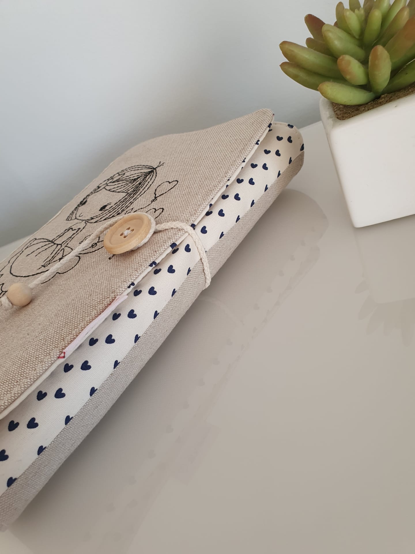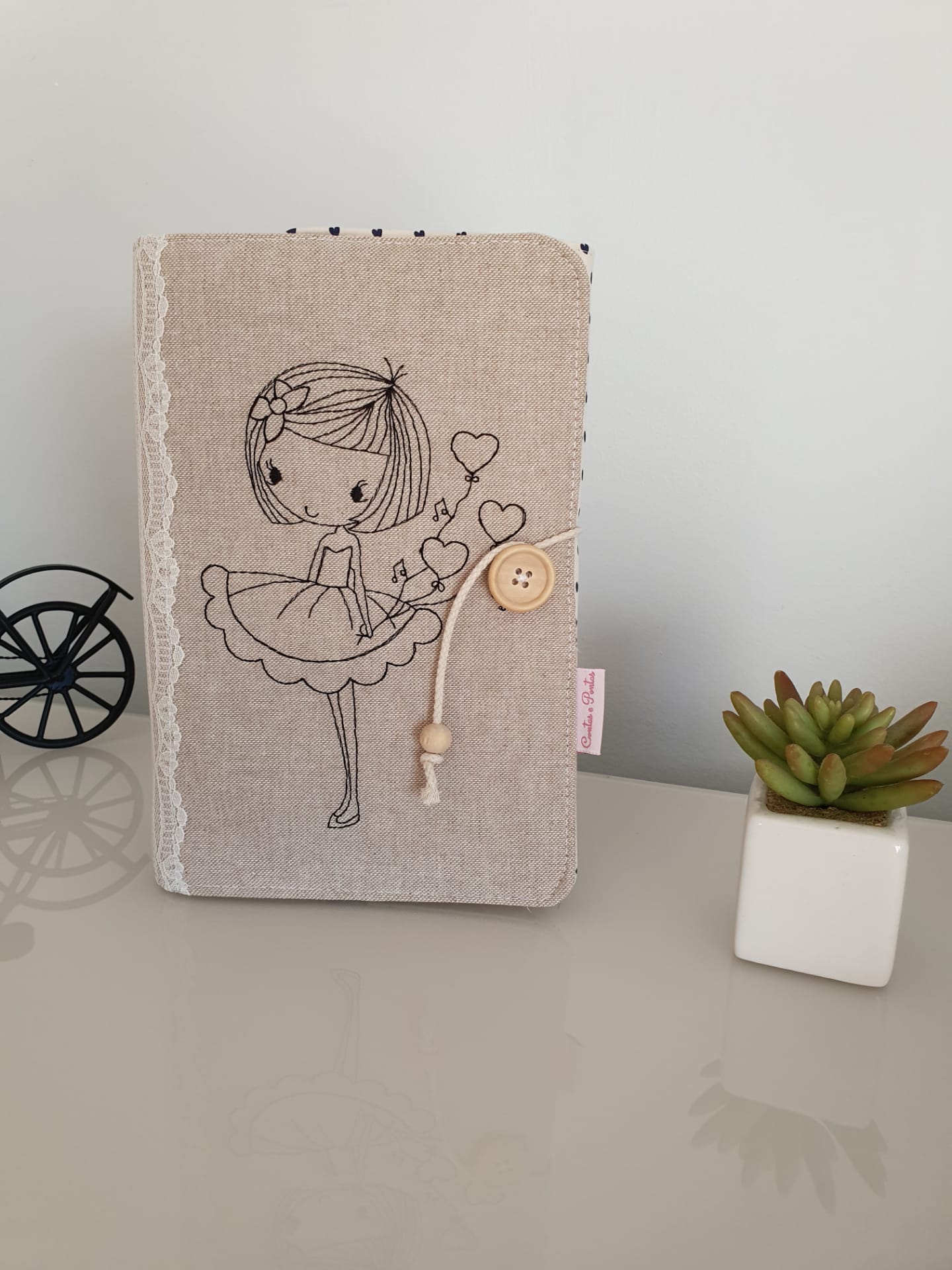 Capa de livro ♥ 3 20,00 € Desconto de %. Partilhar Comprar Contactar 1 unidades em stock Para proteger os seus livros do manuseio frequente ♥ Para si ou para oferecer a quem aprecie a leitura ♥ Peça única ♥ Tecidos 100% algodão | fecho com botão de madeira ♥ Capa bordada ♥ Tamanho universal | ajustável à largura do livro. Recomendada a lavagem à mão. Dimensões aprox. 24 x 49 cm ♥ Homemade and Handmade with love ♥ Tags Capa de livro bordadaCapa de livroCapa de livro em tecido Características