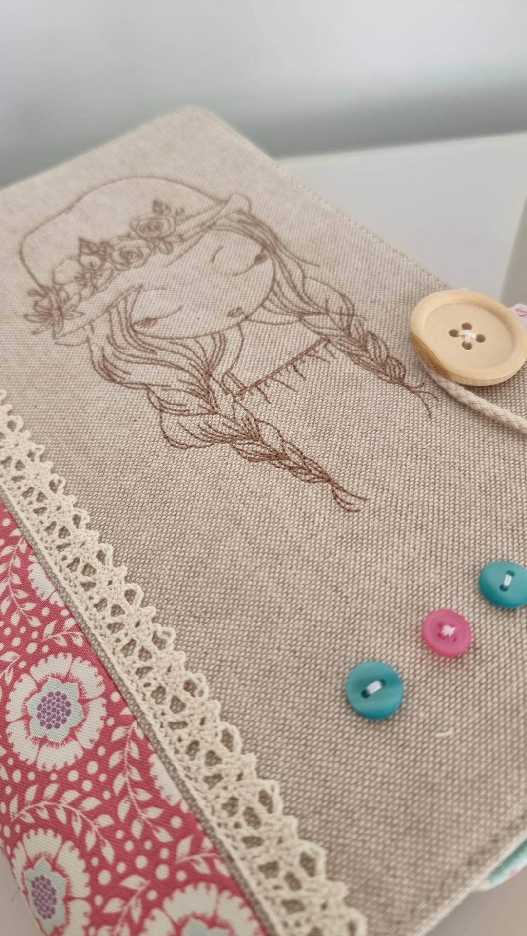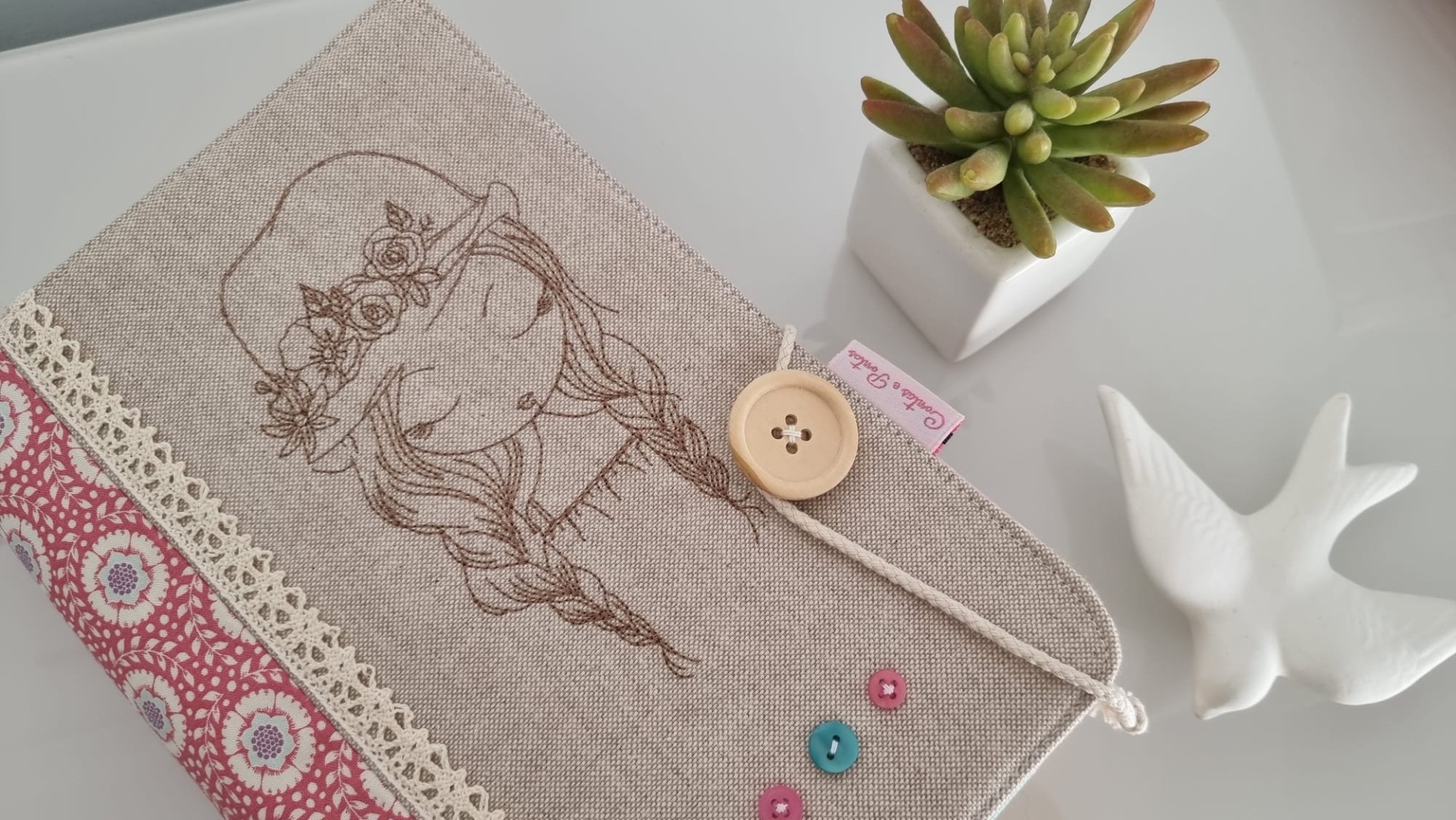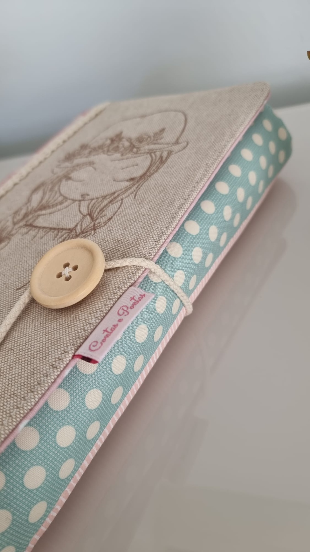 Capa de livro ♥ 5 20,00 € Desconto de %. Partilhar Comprar Contactar 1 unidades em stock Para proteger os seus livros do manuseio frequente ♥ Para si ou para oferecer a quem aprecie a leitura ♥ Peça única ♥ Tecidos 100% algodão | fecho com botão de madeira ♥ Capa bordada ♥ Tamanho universal | ajustável à largura do livro. Recomendada a lavagem à mão. Dimensões aprox. 24 x 49 cm ♥ Homemade and Handmade with love ♥ Tags Capa de livro bordadaCapa de livro em tecido Características
