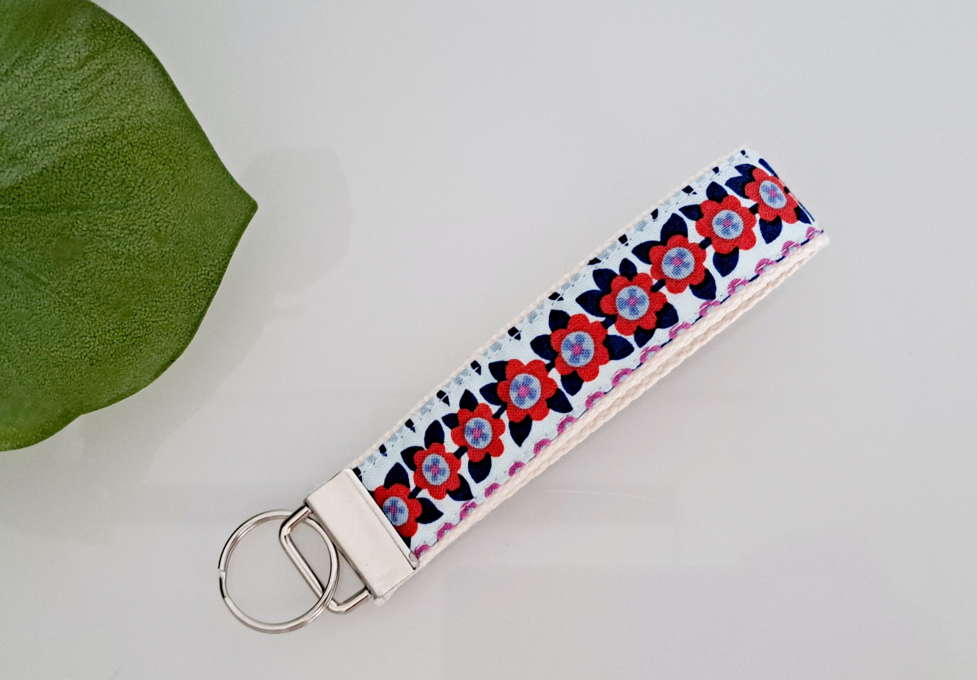 Os nossos porta chaves têm como base uma percinta onde aplicamos o tecido ♥