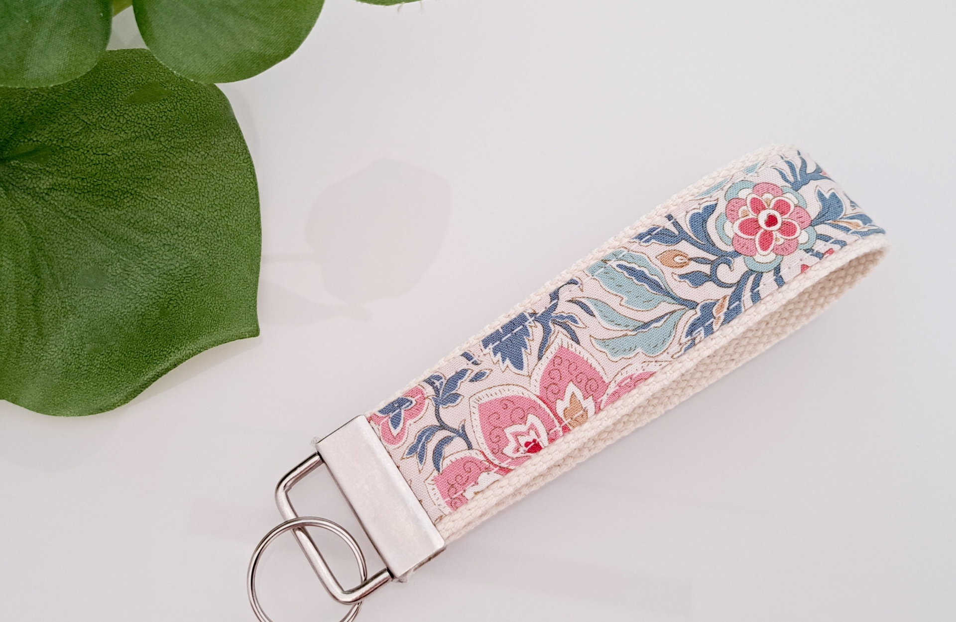 Os nossos porta chaves têm como base uma percinta onde aplicamos o tecido ♥