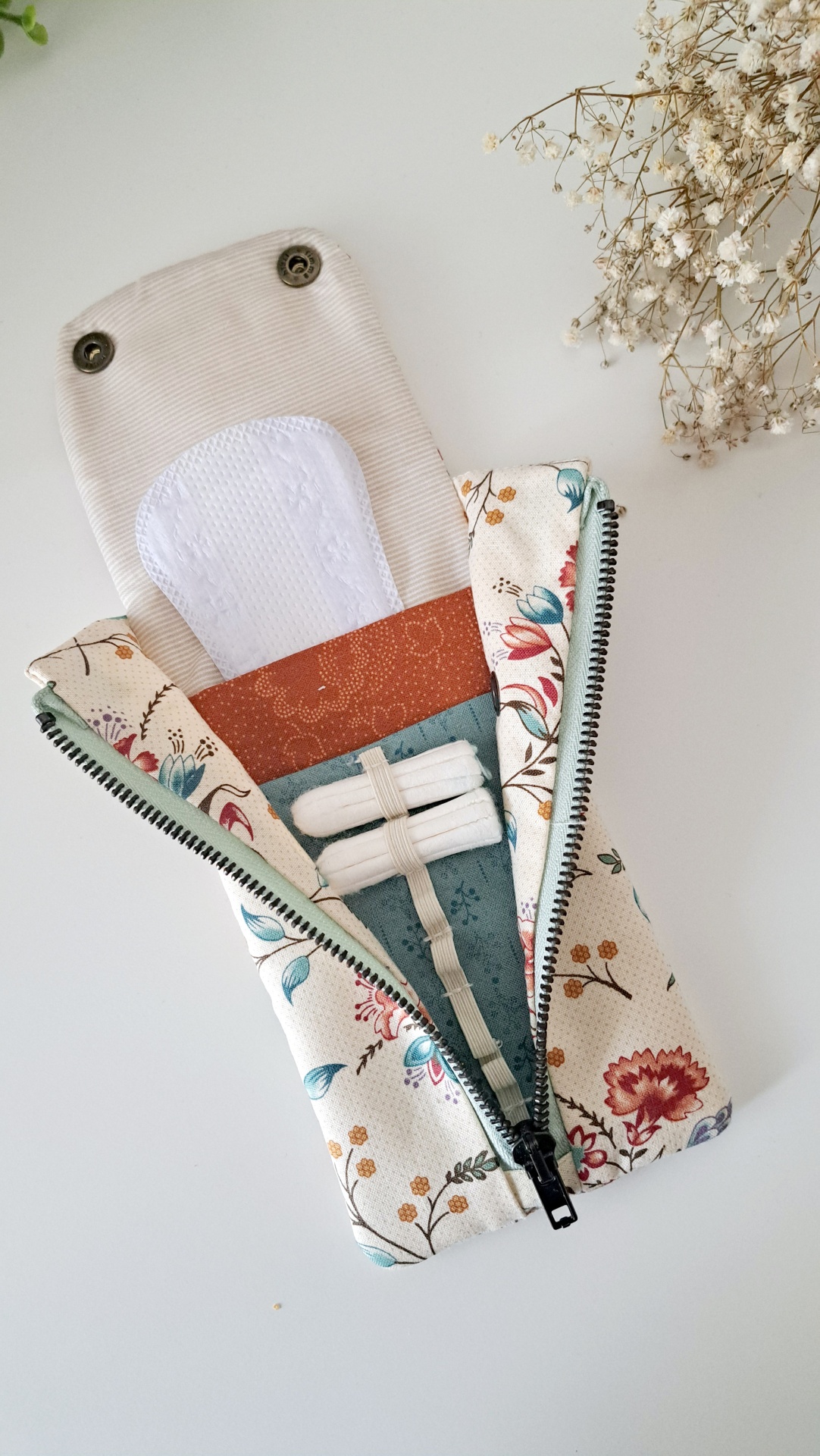 Porta tampões e absorventes ♥ 15,00 € Desconto de %. Partilhar Comprar Contactar 1 unidades em stock Para transportar pensos e tampões♥ Permite guardar 6 tampões de todas as intensidades nos compartimentos elásticos e vários pensos/absorventes nos dois compartimentos adicionais ♥ Pode escolher o tecido que mais gosta, para isso não hesite em contactar-nos ♥ ♥ Tecidos 100% algodão ♥ Fecho de correr metálico ♥ Botões de pressão metálicos Recomendada a lavagem à mão. Dimensões aprox. 19 x 9 cm ♥ Homemade and Handmade with love ♥ Tags Bolsa