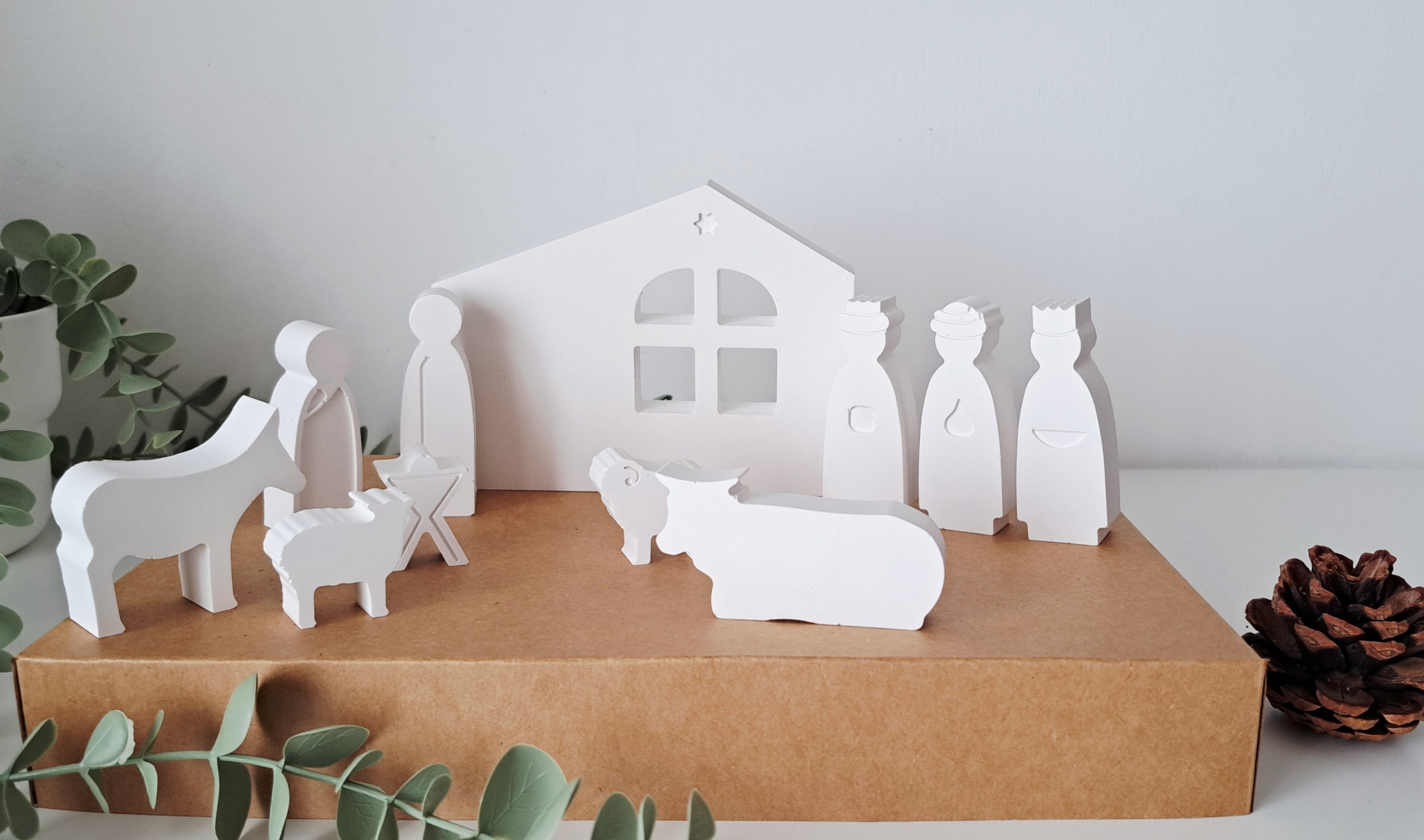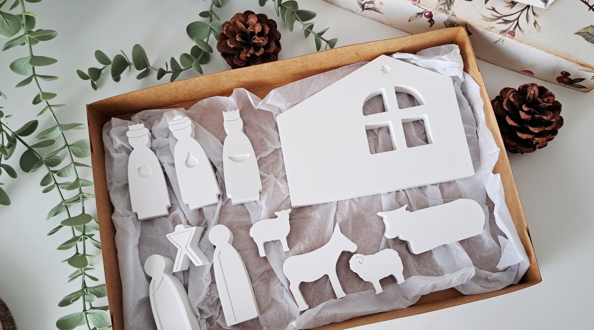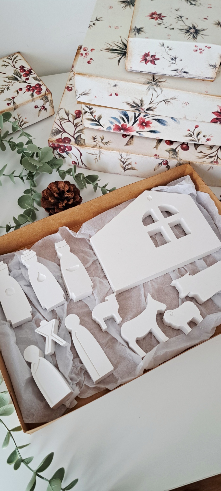 ♥ Caixa de cartão para usar como embalagem de presente e que poderá ser usado para guardar o presépio até à época natalicia seguinte.